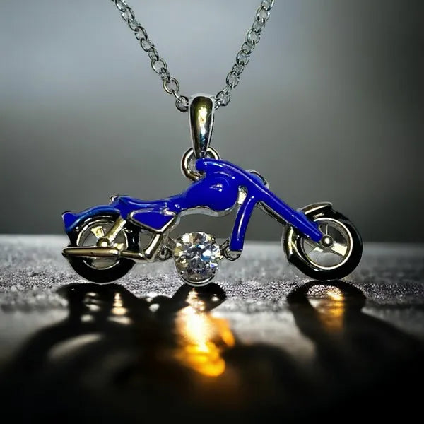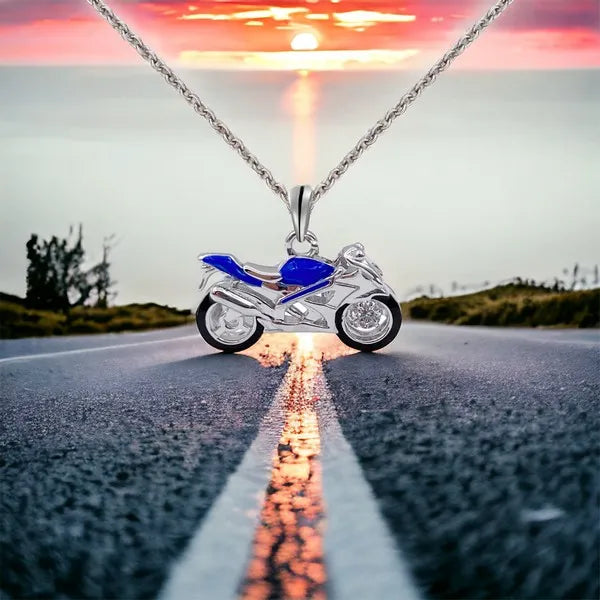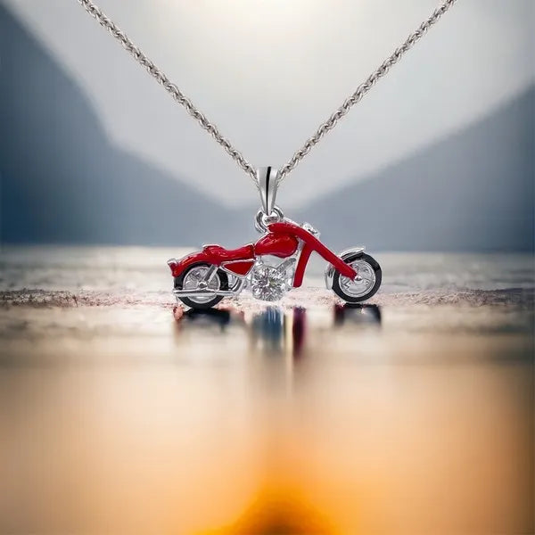 Sterling silver motorcycle pendant with and the fiery red enamel